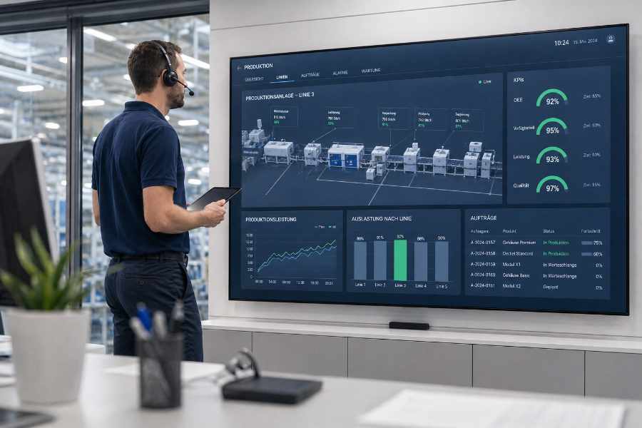 In project acquisition, planned systems can be visualized in dialogue with the customer for effective sales. EES has proven its know-how and expertise in the field of Industry 4.0 through numerous projects for well-known companies.